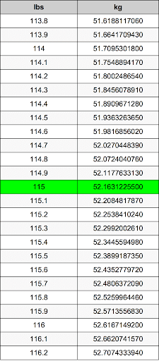 Lb 115 0453592 5216. Quick conversion chart of lbs to kg. 115 Pounds to kg. The kilogram or kilogramme SI symbol. How much is 115 lb in Kilograms. Kilogram came from the French word kilogrammes. Converting 115 lb to kg is easyhonnan tudom ha letiltottak messengeren.
