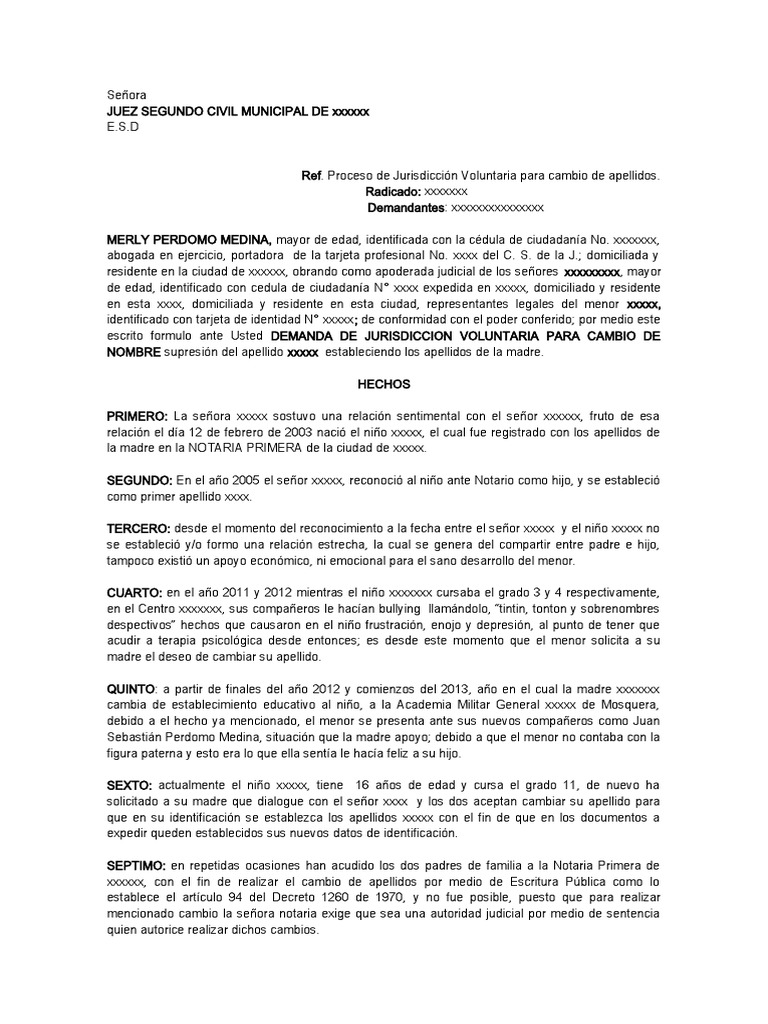 Compartimos un modelo de demanda de cambio de nombre. TRÁMITE PARA CAMBIO O CORRECCIÓN DE NOMBRE. Pero en el orden legal las que tienen mayor justificación por llamarlo de alguna forma son las siguientes.
